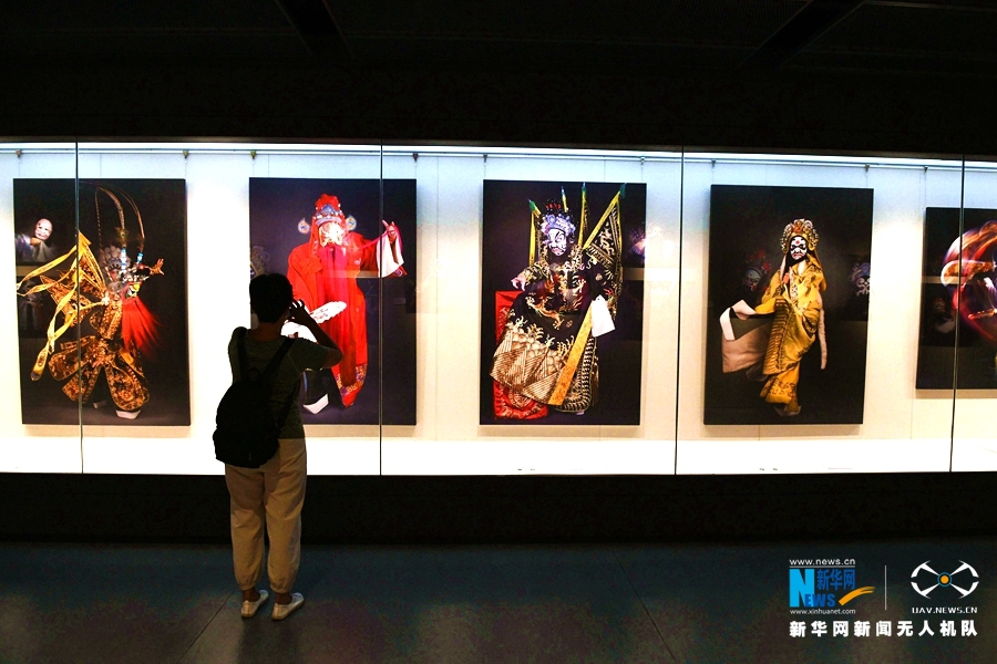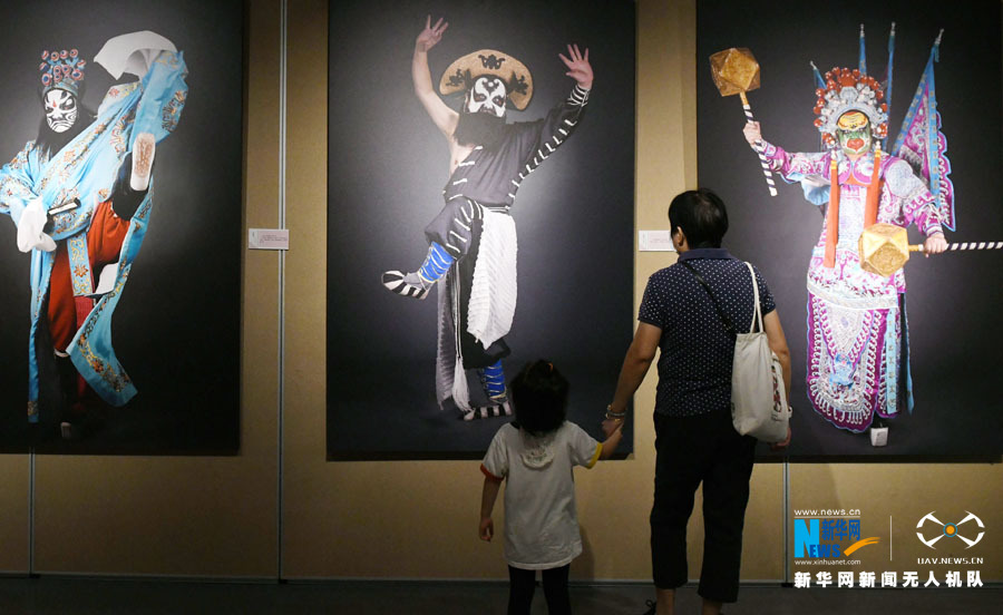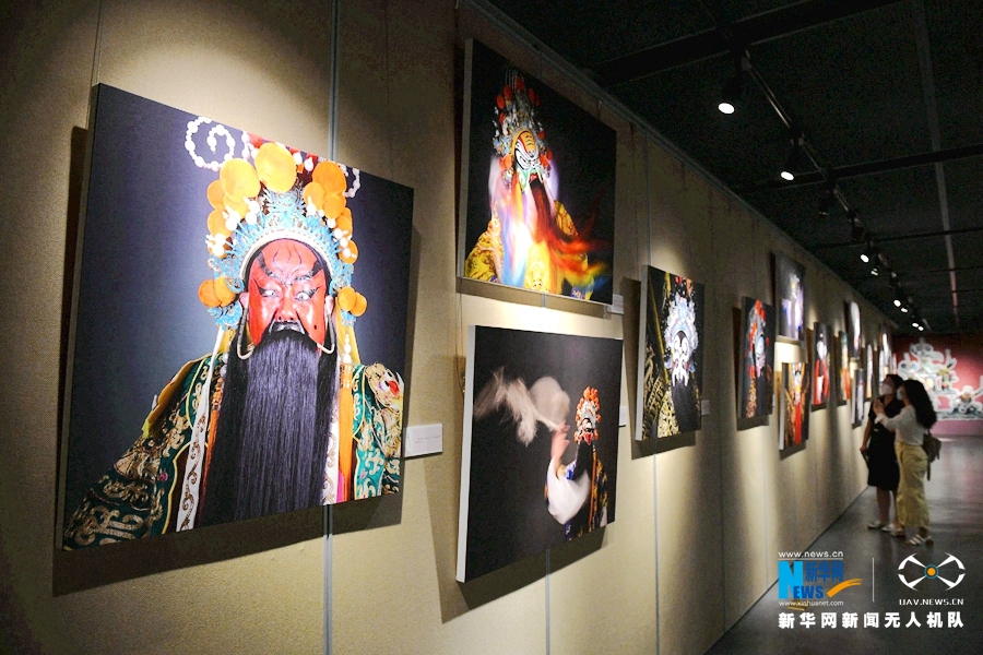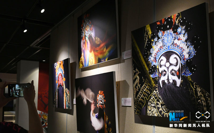 展览首次通过摄影艺术将脸谱描画与人物塑形定格呈现。新华网发(许建梅摄)