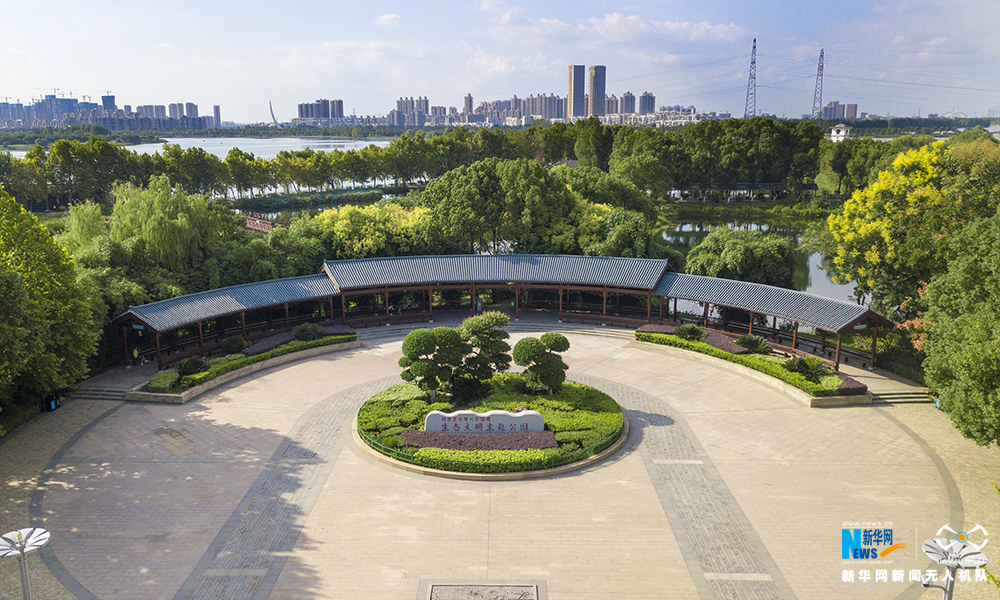 图为武汉金银湖国家城市湿地公园大门。新华网 李晓笛摄