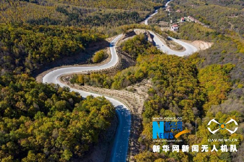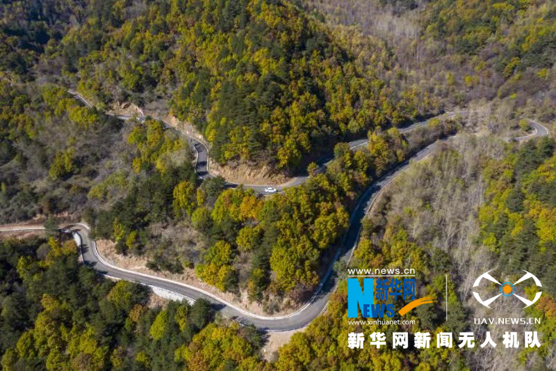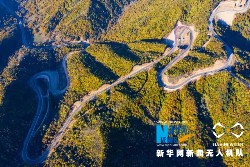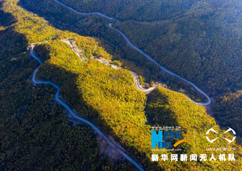 蜿蜒的山路在金秋的阳光下,美成了一副光影图。新华网 发 (刘亮亮 摄)