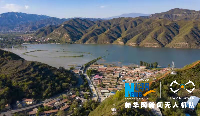 航拍吕梁市柏叶口水库,一池碧水让壮美吕梁山也透出一份温柔。新华网 发(刘亮亮 摄)